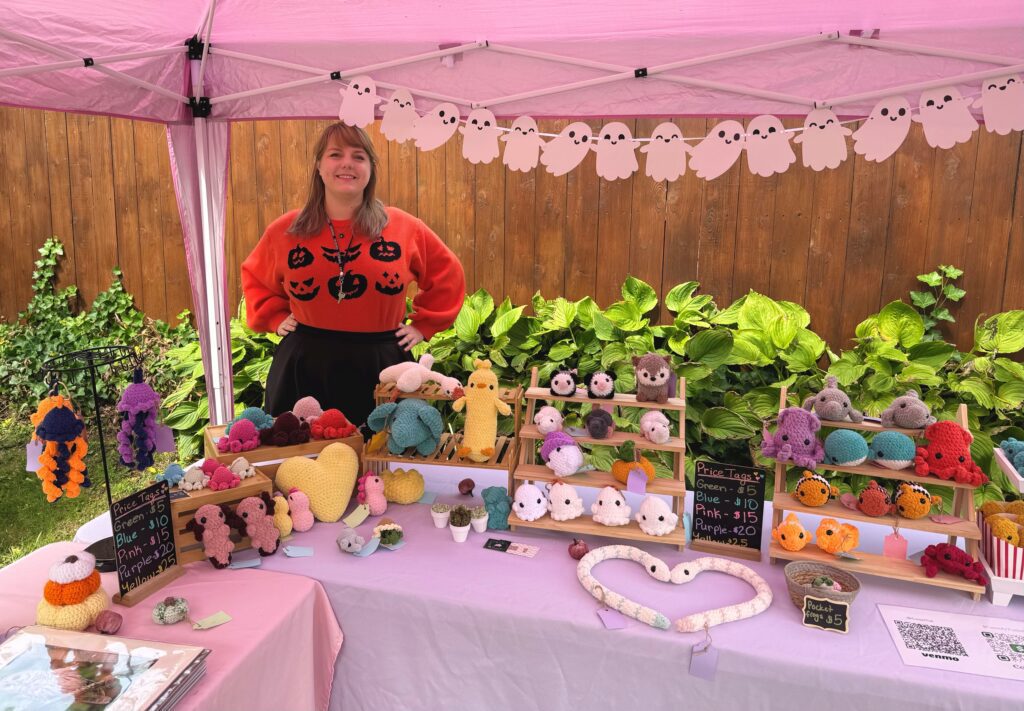 Looking for last minute Holiday gifts? Look no further than Sims Store on Saturday the 20th from 12 – 4pm with Fae Handmade Yarnworks. She has beautiful and unusual crocheted stuffed animals and decor, as well as some nature photography prints by Casey. Check out her chicken nuggets!