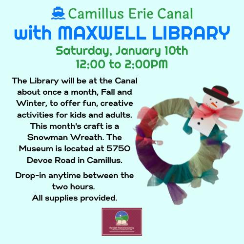 Come to Sims Store and join Anna from the Maxwell Library to make your own snowman wreath! Suitable for all ages and all materials are provided. FREE! You can drop-in any time from 12 – 2pm, no registration required.