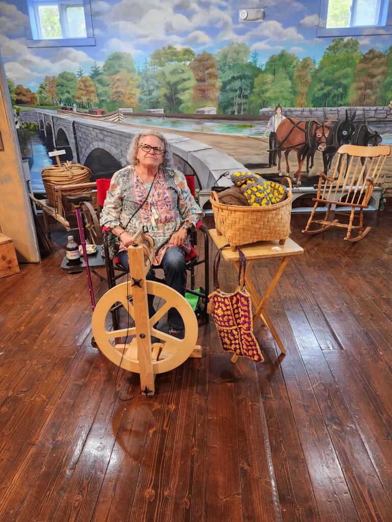 Join local wool spinner Linda Bishop Surbeck from 12 – 4 pm at Sims Store Museum as she shows how yarn was produced “back in the day”. The process of turning wool from a sheep (or goat or alpaca) into yarn which can be used to produce clothing is hundreds of years old. Learn how people from the Canal Era spun wool from our local artisan. This event is FREE!